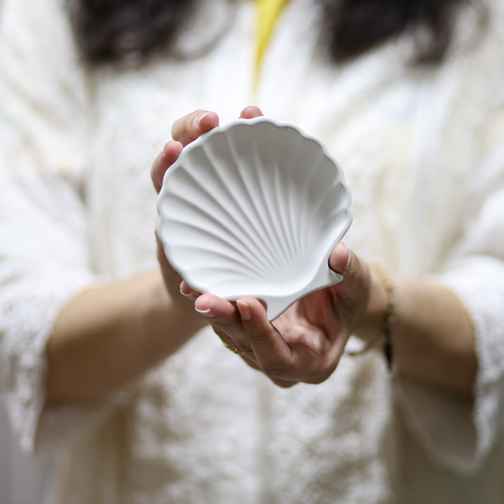 Delicada como o mar em repouso. Inspirado nas formas naturais da concha, este suporte traz leveza e elegância para compor seus rituais. Sua silhueta orgânica acolhe velas, difusores e fragrâncias de ambiente com suavidade, transformando pequenos gestos em experiências visuais e sensoriais. Um detalhe que organiza, protege e embeleza, elevando a composição do seu espaço com naturalidade e sofisticação.